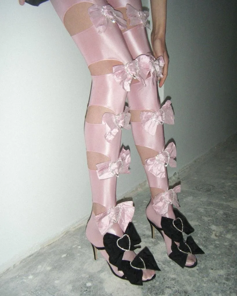 Karen: Can you share the story behind the creation of your signature bow heels? What inspired their unique, playful design?